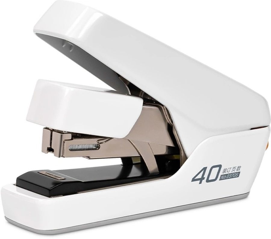 Настольный степлер №24/6, 26/6 Deli 370S, 40 листов, энергосберегающий, плоское скрепление, цвет белый 370S