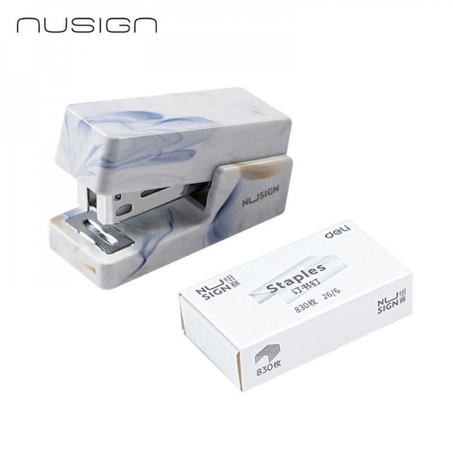 Степлер №24/6 26/6 12л Nusign пластик белый + 830 скоб 26/6 DELI NS083C-WT