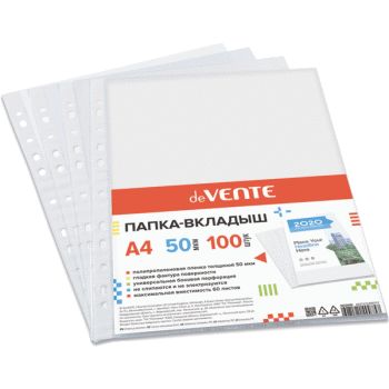 Папка-вкладыш "deVENTE" A4 50 мкм, гладкая фактура, с универсальной боковой перфорацией, 100 шт в уп