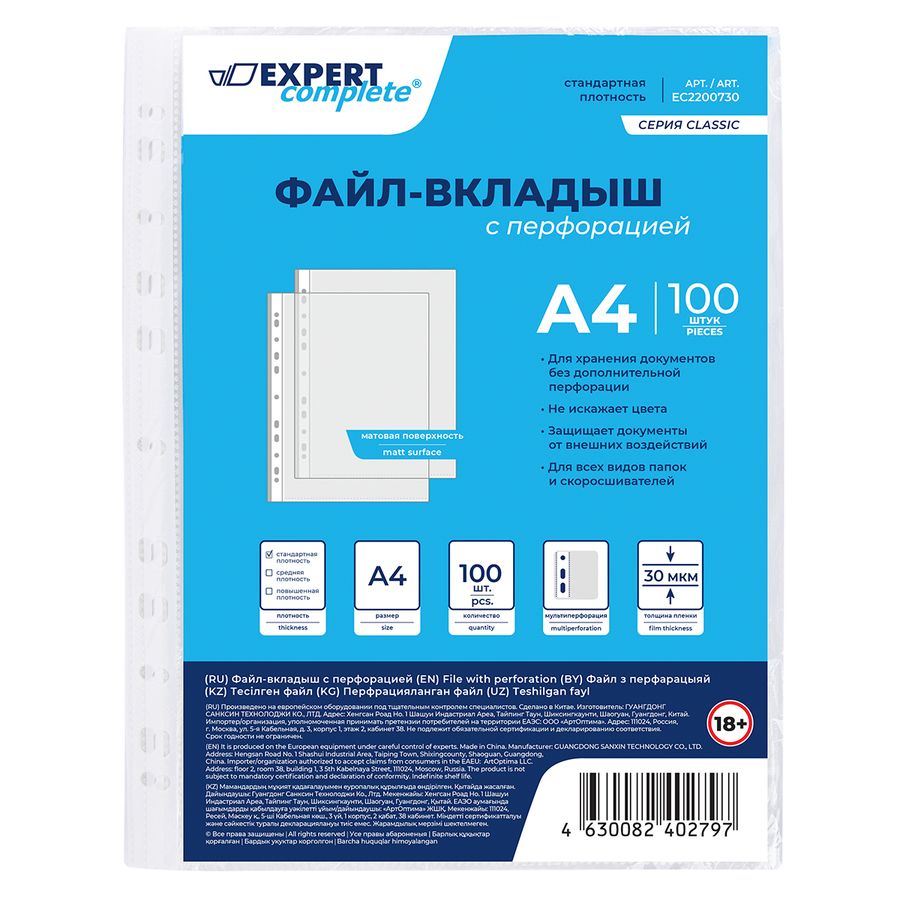 Файлы с перфорацией Expert Complete толщиной 30 мкм предназначены для хранения и защиты документов. Универсальная перфорация подходит для подшивки во все виды папок. Обладают антистатическим эффектом . Изготовлены из полипропилена. В упаковке 100 шт Оптовая упаковка пакет с клеевым краем Цветной вкладыш А4, маркировка на транспортной коробке Допустимое отклонение толщины пластика: ±10%