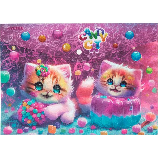 Папка-конверт на кнопке "deVENTE. Candy Cat" A4 (330x235 мм) 180 мкм, матовая полупрозрачная с рисунком, с волокнистой фактурой, индивидуальная маркировка.