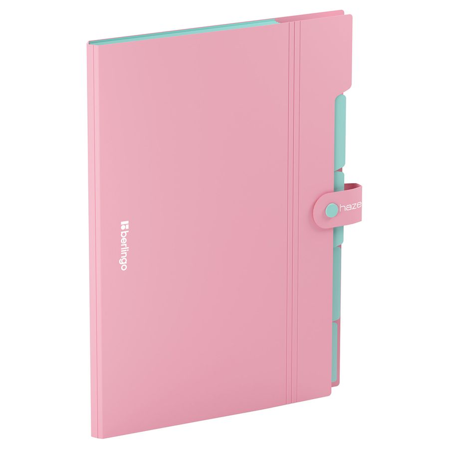 Папка пластиковая на кнопке с отделениями Berlingo "Haze" формата А4 с рисунком. Обложка с эффектом софт-тач. Цвет обложки - розовый. 5 внутренних отделений для удобного хранения и организации документов. Каждое отделение с индексным полем, позволяет сортировать документы по темам или алфавиту. Надежная застежка-кнопка. Контрастный мятный цвет отделений. Быстрый доступ к содержимому. Изготовлена из высококачественного полипропилена с матовой текстурой поверхности "песок", на которой не видно отпечатков пальцев и мелких царапин. Предназначена для хранения и транспортировки документов. Толщина обложки 600мкм. Вмещает до 200 листов. Размер 245*325*10. Упакована в индивидуальный прозрачный пакет по форме.