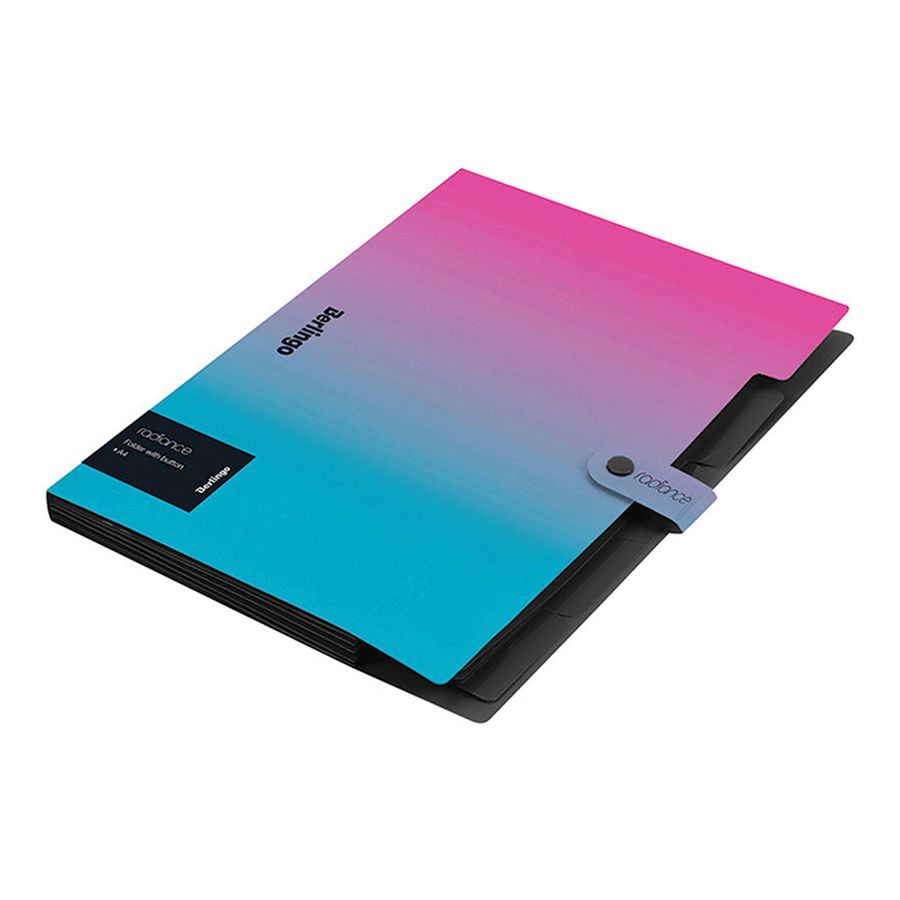 Папка пластиковая на кнопке с отделениями Berlingo "Radiance" формата А4 с рисунком. Цвет: розово-голубой градиент. 5 внутренних отделений для удобного хранения и организации документов. Каждое отделение с индексным полем, позволяет сортировать документы по темам или алфавиту. Надежная застежка-кнопка черного цвета. Черный цвет внутренней поверхности. Быстрый доступ к содержимому. Изготовлена из высококачественного полипропилена с матовой текстурой поверхности "песок", на которой не видно отпечатков пальцев и мелких царапин. Предназначена для хранения и транспортировки документов. Толщина обложки 600мкм. Вмещает до 200 листов. Размер 245*325*10. Упакована в индивидуальный прозрачный пакет по форме.