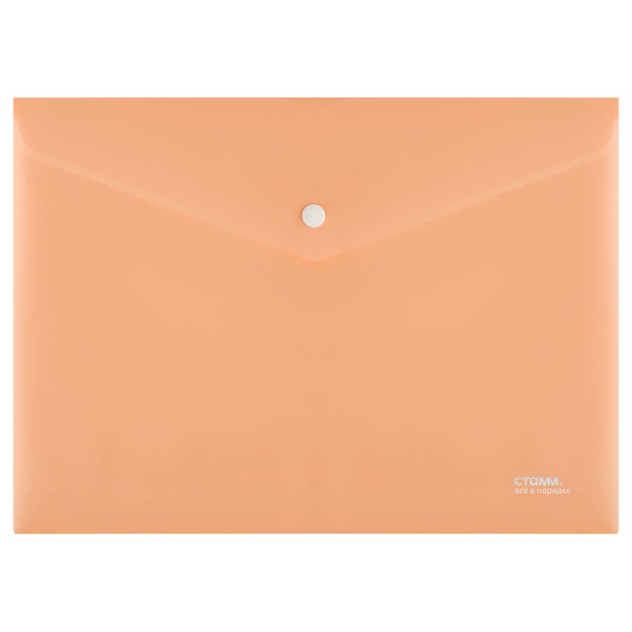 Папка-конверт на кнопке «СТАММ» серии «Акцент» надёжно защищает документы от влаги и пыли. Горизонтальное изделие форматат А4 вмещает до 100 листов. Изготовлена из качественного полипропилена плотностью 180 мкм с матовой текстурой. Размер папки составляет 330*235 мм. Цвет папки – персиковый. Изделие плотно закрывается на кнопку.• Размер: 330*235 мм;• Толщина материала: 180 мкм;• Формат: А4;• Вместимость в листах: до 100 листов;• Цвет: персиковый;• Способ фиксации: кнопка.