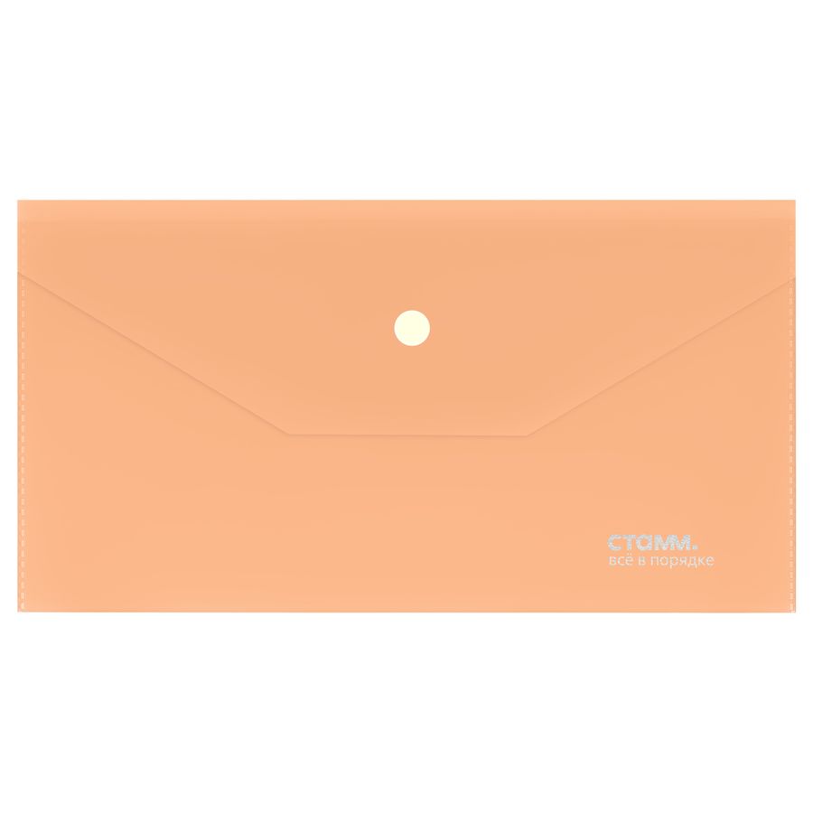 Папка-конверт на кнопке СТАММ «Акцент» формата С6 надёжно защищает документы от влаги и пыли. Горизонтальное изделие вмещает до 100 листов. Цвет папки – персиковый. Она изготовлена из качественного полипропилена плотностью 180 мкм с матовой текстурой. Размер папки составляет 223*120 мм. Изделие плотно закрывается на кнопку.• Размер: 223*120 мм;• Толщина материала: 180 мкм;• Формат: А4;• Вместимость в листах: до 100 листов;• Цвет: персиковый;• Способ фиксации: кнопка.