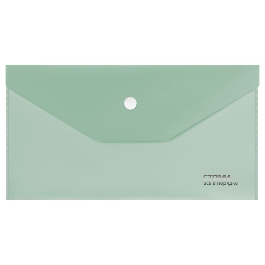 Папка-конверт на кнопке СТАММ «Акцент» формата С6 надежно защищает документы от влаги и пыли. Горизонтальное изделие вмещает до 100 листов. Цвет папки – эвкалиптовый. Она изготовлена из качественного полипропилена плотностью 180 мкм с матовой текстурой. Размер папки составляет 223*120 мм. Она плотно закрывается на кнопку.• Размер: 223*120 мм;• Толщина материала: 180 мкм;• Формат: А4;• Вместимость в листах: до 100 листов;• Цвет: эвкалиптовый;• Способ фиксации: кнопка.