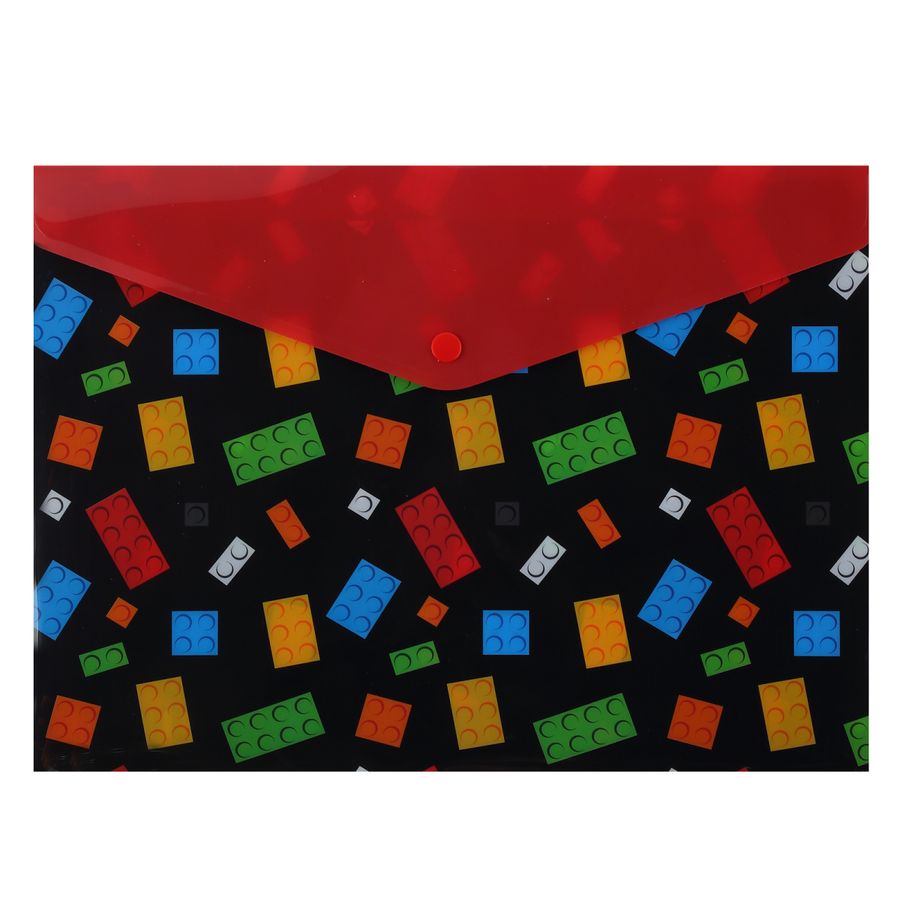Папка-конверт на кнопке, А4, 0,15 мм, цвет черный с рисунком, Master builder, КОКОС, 251316