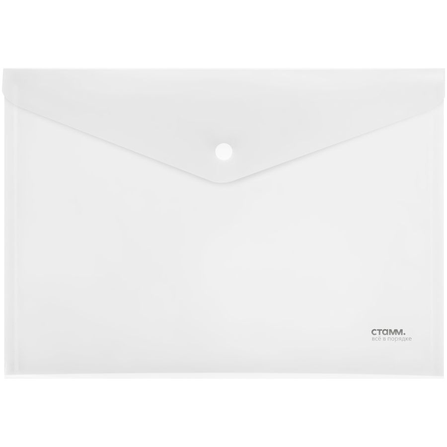 Папка-конверт на кнопке СТАММ А4, 180мкм, пластик, прозрачная ММ-31292