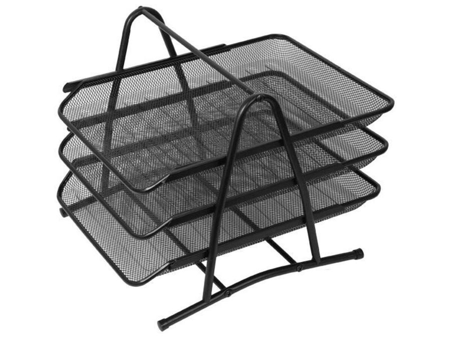 Лоток горизонтальный 3-x секционный, 35x28x29см, сетчатый металлический, чёрный