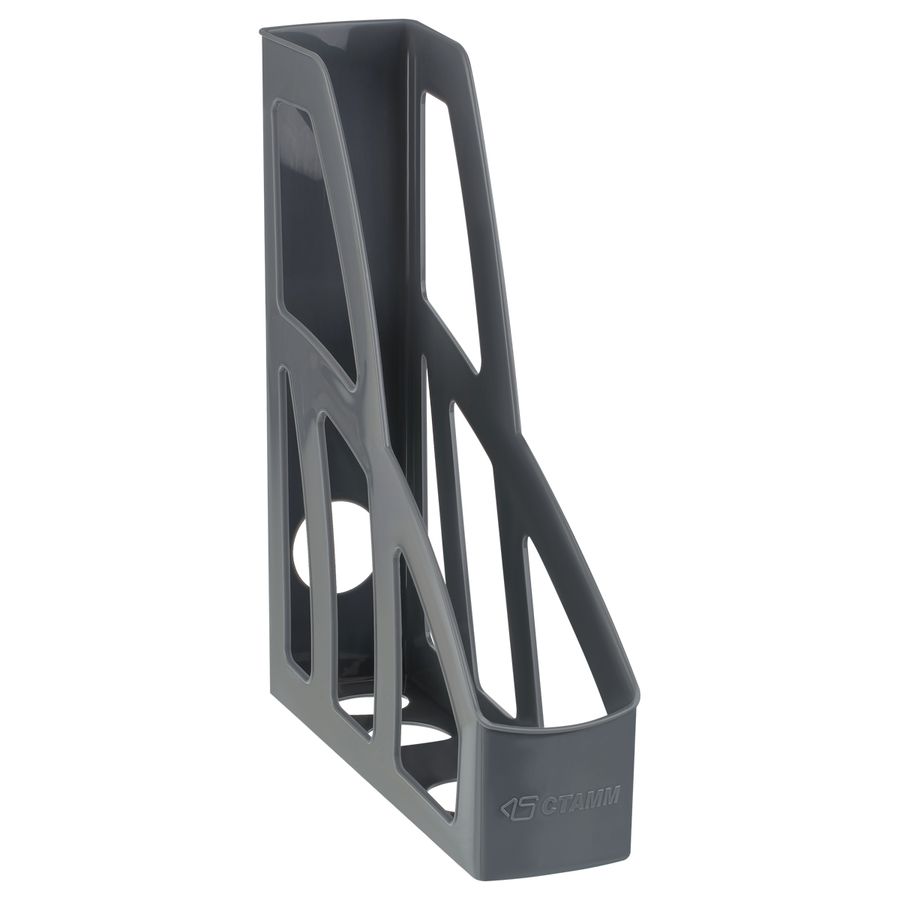 Лоток для бумаг вертикальный "СТАММ" серии "Лидер" предназначен для хранения и систематизации бумажной продукции формата А4. Оригинальный дизайн, лёгкий, устойчивый и прочный корпус. Имеет отверстие на торцевой части для удобной переноски. Изготовлен из качественного пластика. Цвет лотка - серый. Изделие высотой 297мм, глубиной 250мм, шириной 75мм вмещает до 550 листов.
