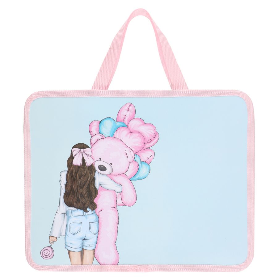 Папка на молнии сверху для тетрадей А4 1отд. First Pink Bear с ручками Кокос 230581 (жен)
