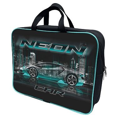 Папка текстиль на молнии сверху А4 1отд. Neon car с ручками карман внутри Lamark DC0025-06