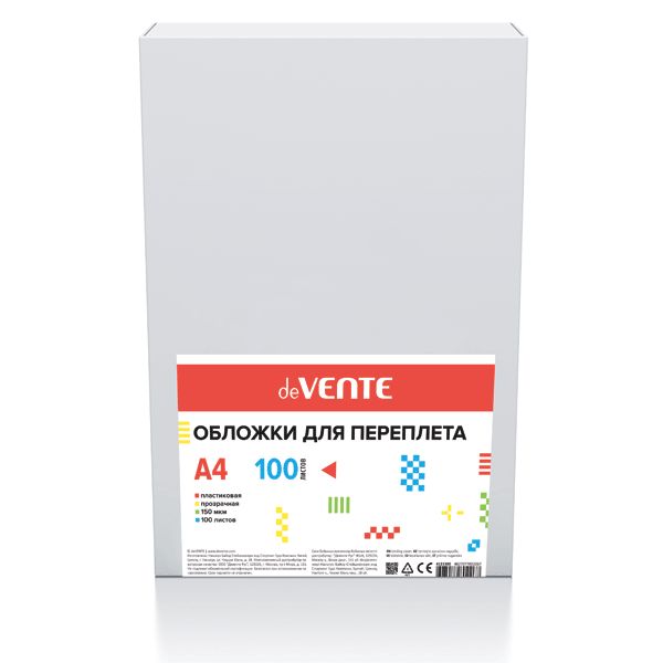Обложка для переплета "deVENTE" A4, толщина 150 мкм, пластик прозрачный, 100 л