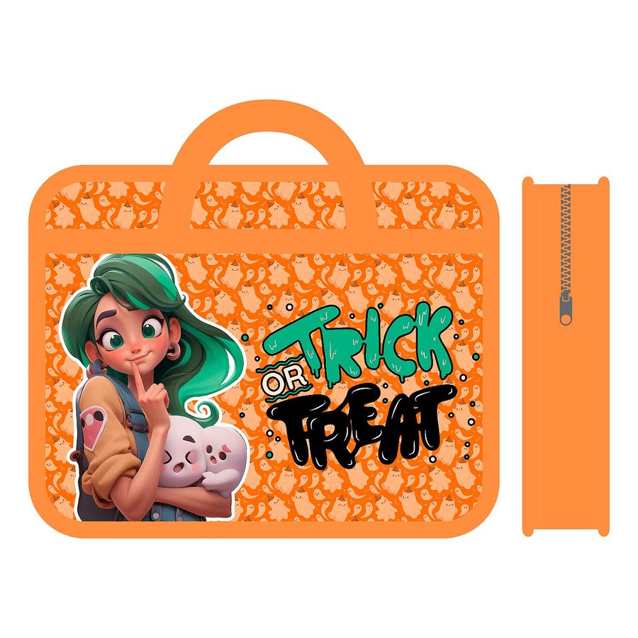 Папка на молнии сверху для тетрадей А4 1отд. ПМ-А4-25 Девочка с привидениями с ручками ПЧЕЛКА (жен)