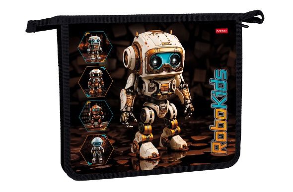 Папка для тетрадей Пластиковая А5ф Hatber 1 отделение 205х240х40мм на молнии -Робо- в индив.упак.