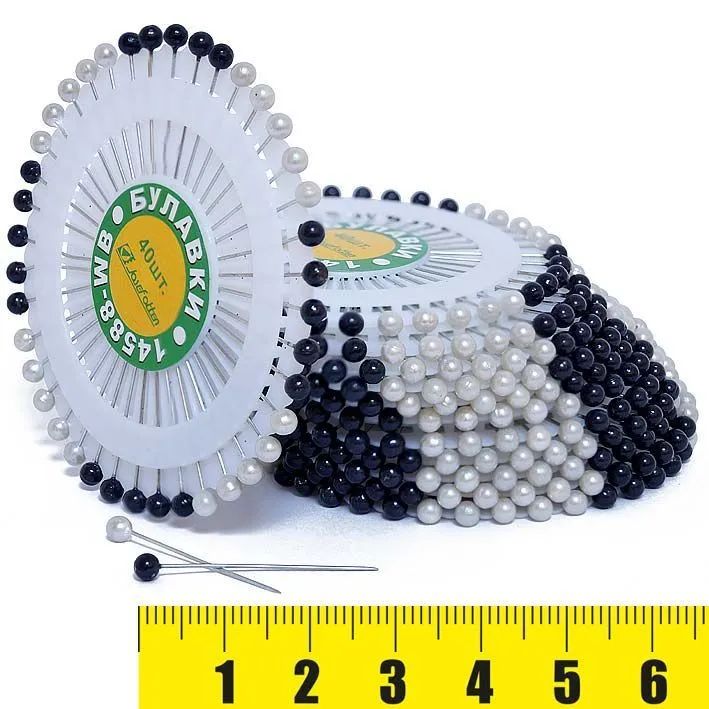 Булавки 28мм 40шт с ушком пласт.коробка диск черно-белые JOSEF OTTEN 14588-WB