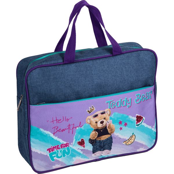 Папка текстиль на молнии сверху для тетрадей А4 Teddy Bear текстиль джинс с ручками deVENTE 8056442