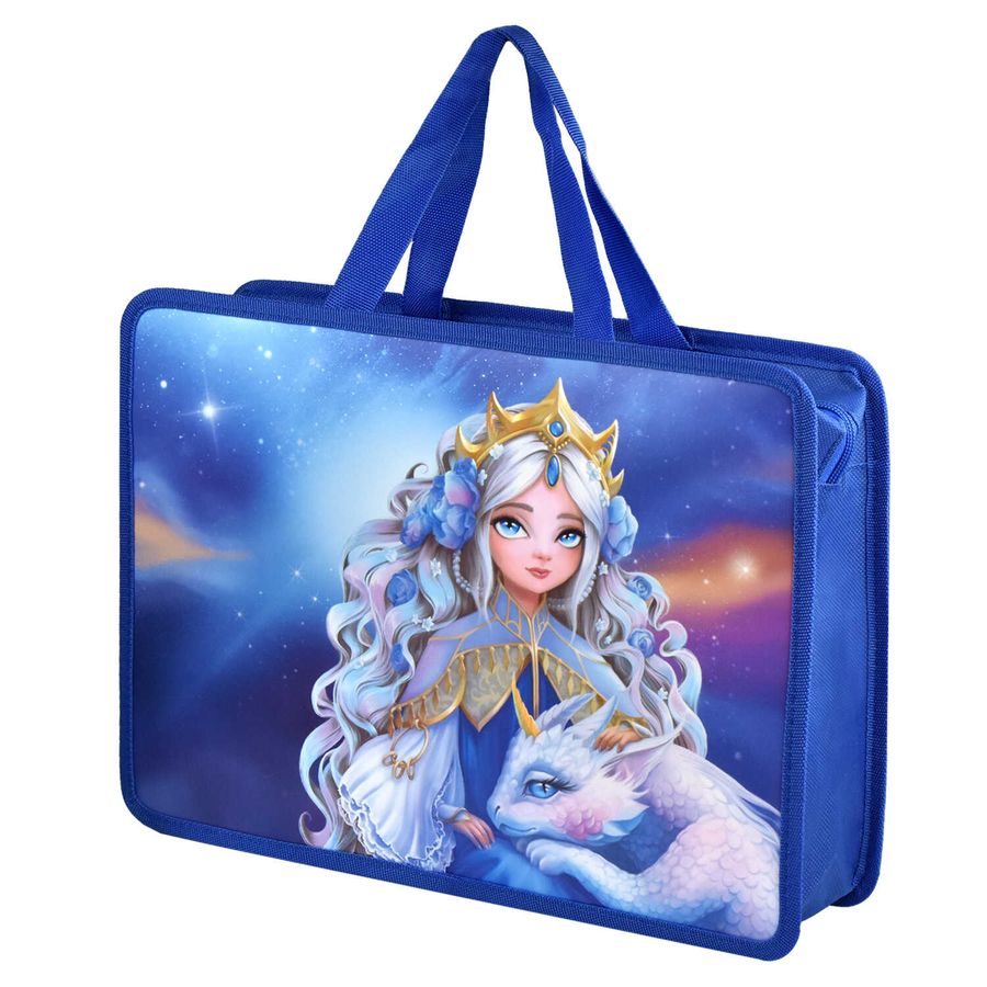 Папка для школьных тетрадей пластиковая Феникс+, арт. 66303/ 12 ПРИНЦЕССА С ДРАКОНОМ (полипропилен, формат А4, 34х25х9.5 см, 1 отделение (-я), молния, дно с расширением, текстильные ручки, УФ-печать)