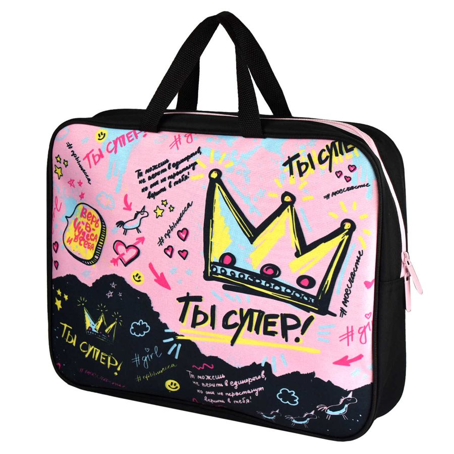 Папка на молнии сверху для тетрадей А4+ 1отд. Ты супер! с ручками пластик ФЕНИКС+ 66286 (жен)