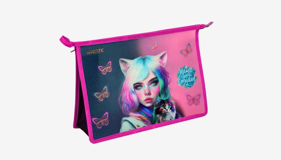 Папка для тетрадей "deVENTE. Miracle" A4 (330x230x100 мм) с текстильным расширением 100 мм, на молнии сверху, 400 мкм, матовая полупрозрачная с рисунком, с искрящейся фактурой, с тиснением золотистой фольгой.