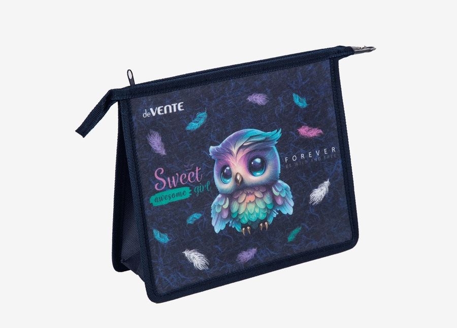 сверху для тетрадей А5 1отд. Happy Owl (243x200x80 мм) с текстильным расширением 80 мм, на молнии сверху, 400 мкм, матовая полупрозрачная с рисунком, с волокнистой фактурой, индивидуальная упаковка.