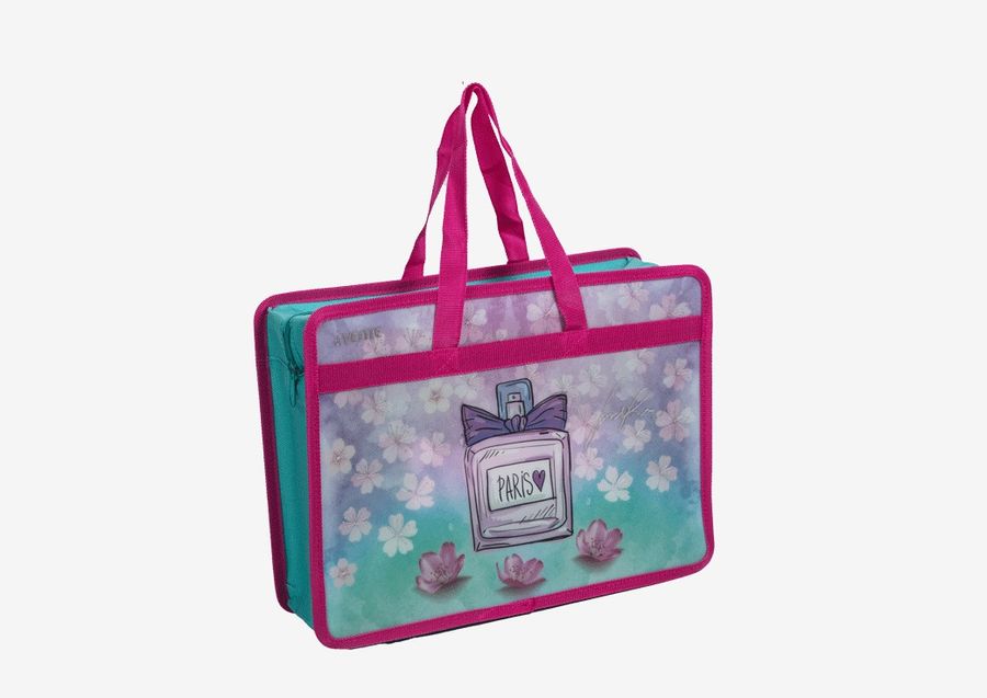 Папка для тетрадей, ИЗО и технологии "deVENTE. Perfume" A4 (34x25x10 см) с текстильным расширением 10 см, на молнии сверху, 400 мкм, матовая полупрозрачная с рисунком, с искрящейся фактурой, с тиснение.