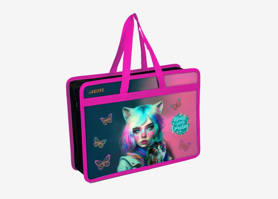 Папка для тетрадей, ИЗО и технологии "deVENTE. Miracle" A4 (34x25x10 см) с текстильным расширением 10 см, на молнии сверху, 400 мкм, матовая полупрозрачная с рисунком, с искрящейся фактурой,с тиснением фольгой.