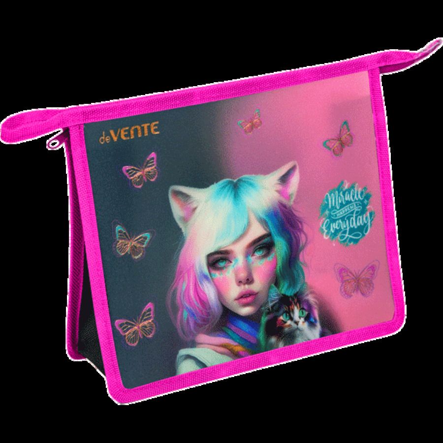 Папка для тетрадей "deVENTE. Miracle" A5 (243x200x80 мм) с текстильным расширением 80 мм, на молнии сверху, 400 мкм, матовая полупрозрачная с рисунком, с искрящейся фактурой, с тиснением золотистой фольгой, индивидуальная упаковка