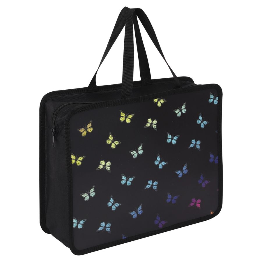 Папка с ручками пластик, 26*33*10 см, на молнии сверху, с рисунком Бабочки First КОКОС 240570