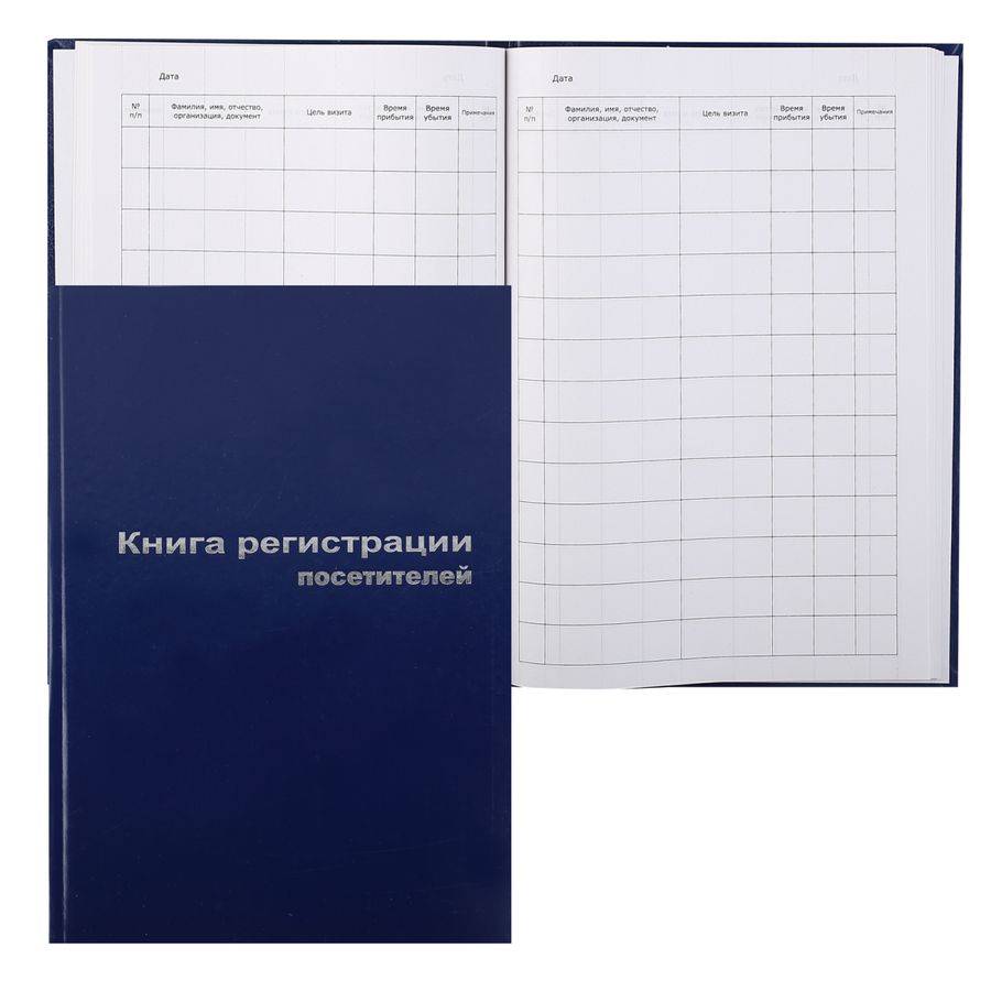 Книга регистрации посетителей A4, 96 л, офсет 55-60 г/м², 90% белизна, твердая обложка бумвинил + тиснение фольгой/129807