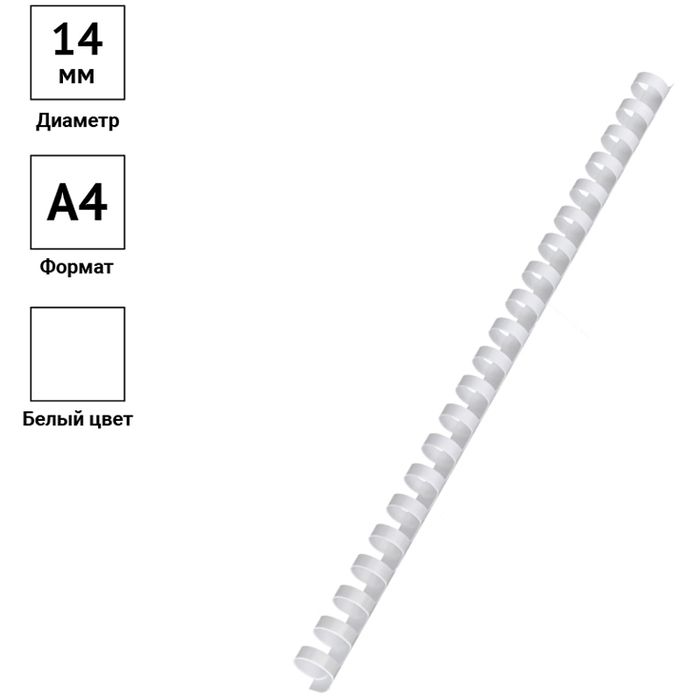 Пластиковые пружины OfficeSpace белого цвета диаметром 14мм предназначены для переплета документов. Легко выдерживают многократное раскрытие при необходимости добавить или удалить листы из готовой брошюры. Рекомендуемый объем брошюры при использовании данного диаметра пружины: 81-100 листов.