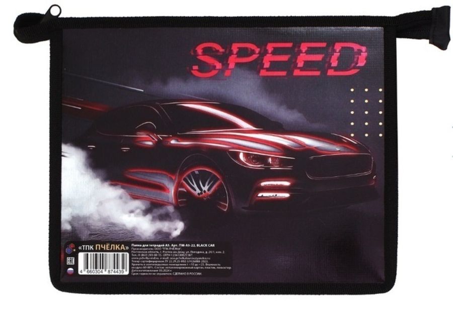 Папка для тетрадей пластик молния сверху А5 1отд. Black car ПЧЕЛКА ПМ-А5-22 (муж)