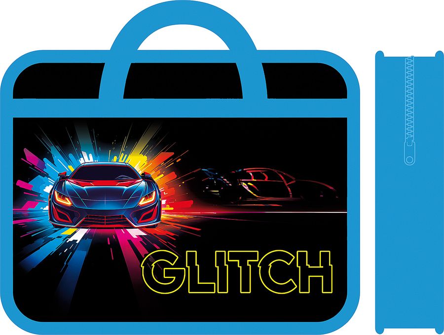 Папка для тетрадей пластик молния сверху А4 1отд. Glitch ручки ПЧЕЛКА ПМ-А4-25 (муж)