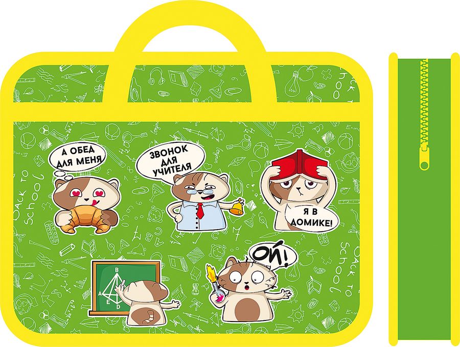 Папка для тетрадей пластик молния сверху А4 1отд. Котоучение ручки ПЧЕЛКА ПМ-А4-25 (уни)
