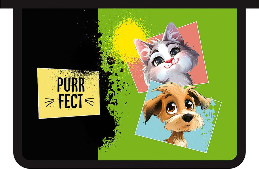 Папка для тетрадей А4 пластиковая, молния сверху с дизайном (50) (ПМ-А4-29, PURRFECT 2025)
