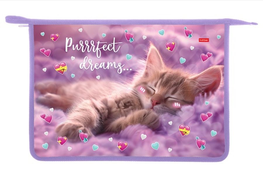 Папка для тетрадей пластик молния сверху А4 1отд. Мяу стори HATBER AMc_03036 (жен)