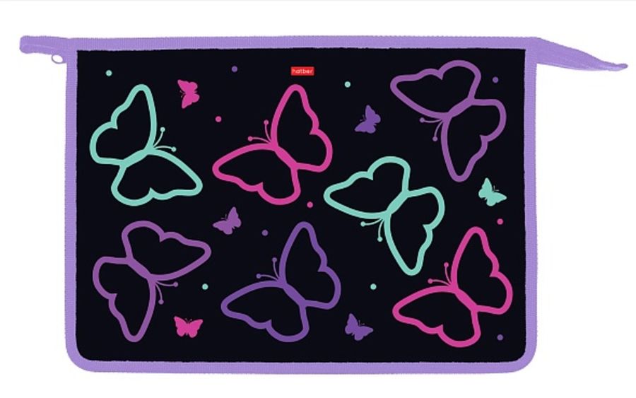 Папка для тетрадей пластик молния сверху А4 2отд. Магия бабочек HATBER AMc_04044 (жен)