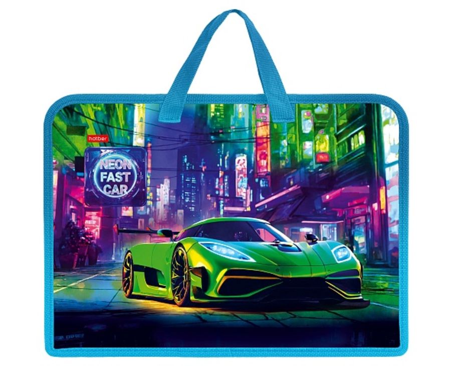 Папка для тетрадей пластик молния сверху А4 1отд. Неоновый пит-стоп HATBER AMn_07086 (муж)