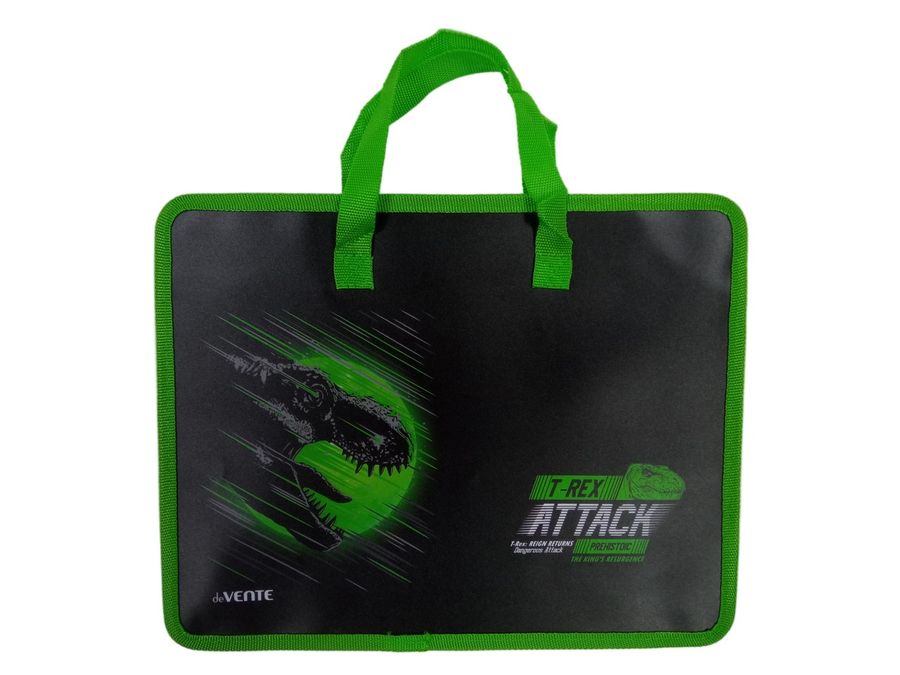 Папка для тетрадей, ИЗО и технологии "deVENTE. T-Rex" A4 (33,5x26x10 см) с текстильным расширением 10 см, на молнии сверху, пластик 400 мкм, текстильные ручки, в пластиковом пакете