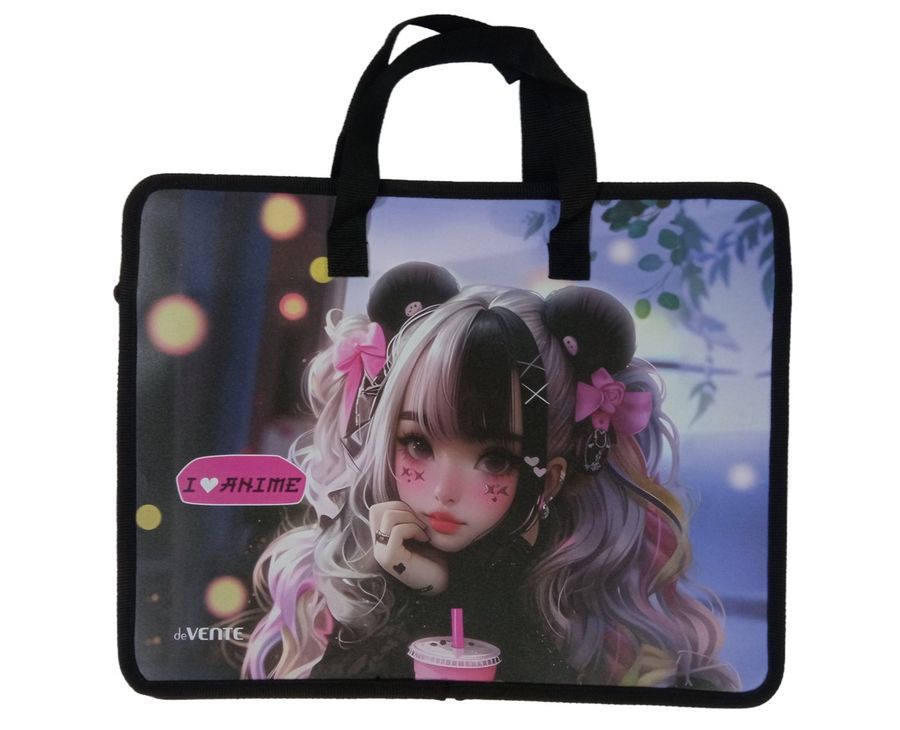 Папка для тетрадей, ИЗО и технологии "deVENTE. I Love Anime" A4 (33,5x26x10 см) с текстильным расширением 10 см, на молнии сверху, пластик 400 мкм, текстильные ручки, в пластиковом пакете