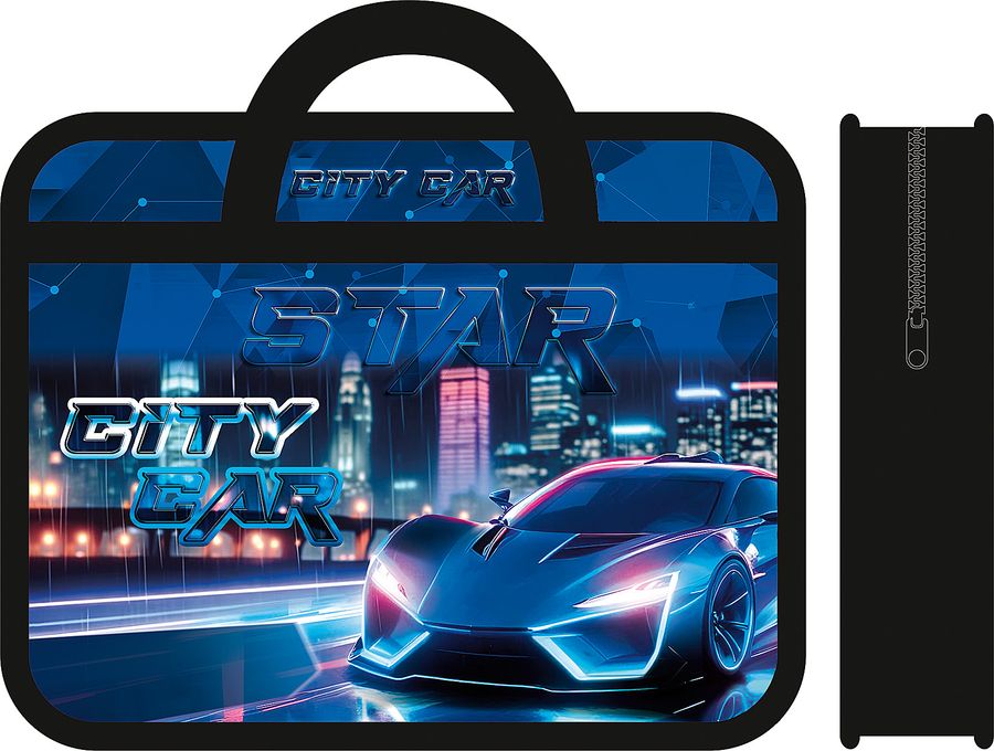 Папка для тетрадей пластик молния сверху А4 1отд. City car ручки ПЧЕЛКА ПМ-А4-25 (муж)