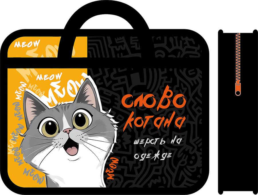 Папка для тетрадей пластик молния сверху А4 1отд. Классный котик ручки ПЧЕЛКА ПМ-А4-25 (уни)