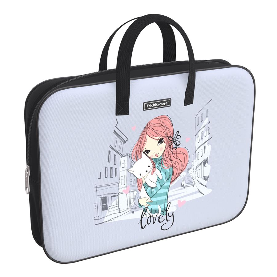 Папка текстиль А4+ 1отд. молния сверху Romantic Girl ручки ERICH KRAUSE 57594 (жен)