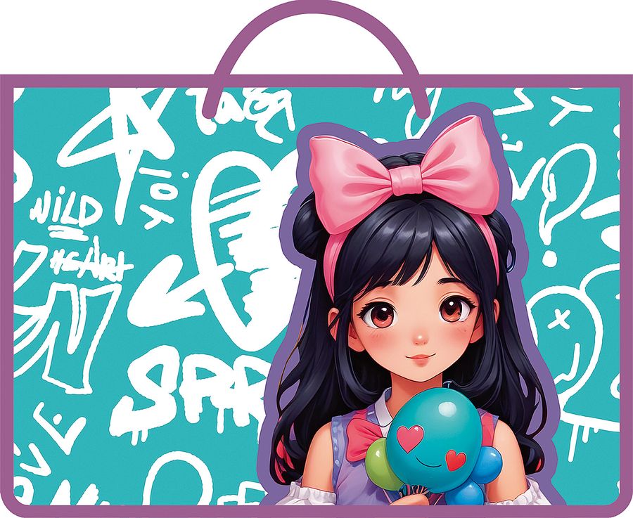 Папка детская А4 пластиковая, ручки-тесьма 335/235/55 (50) (ПМ-А4-35, ДЕВОЧКА НА ПРАЗДНИКЕ 2025)