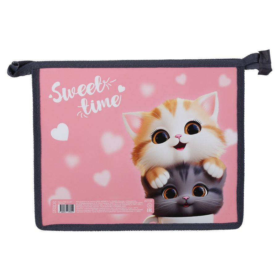 Папка для тетрадей пластик молния сверху А5 1отд. Cute cats Кокос ПМ-А5-291/251729 (жен)