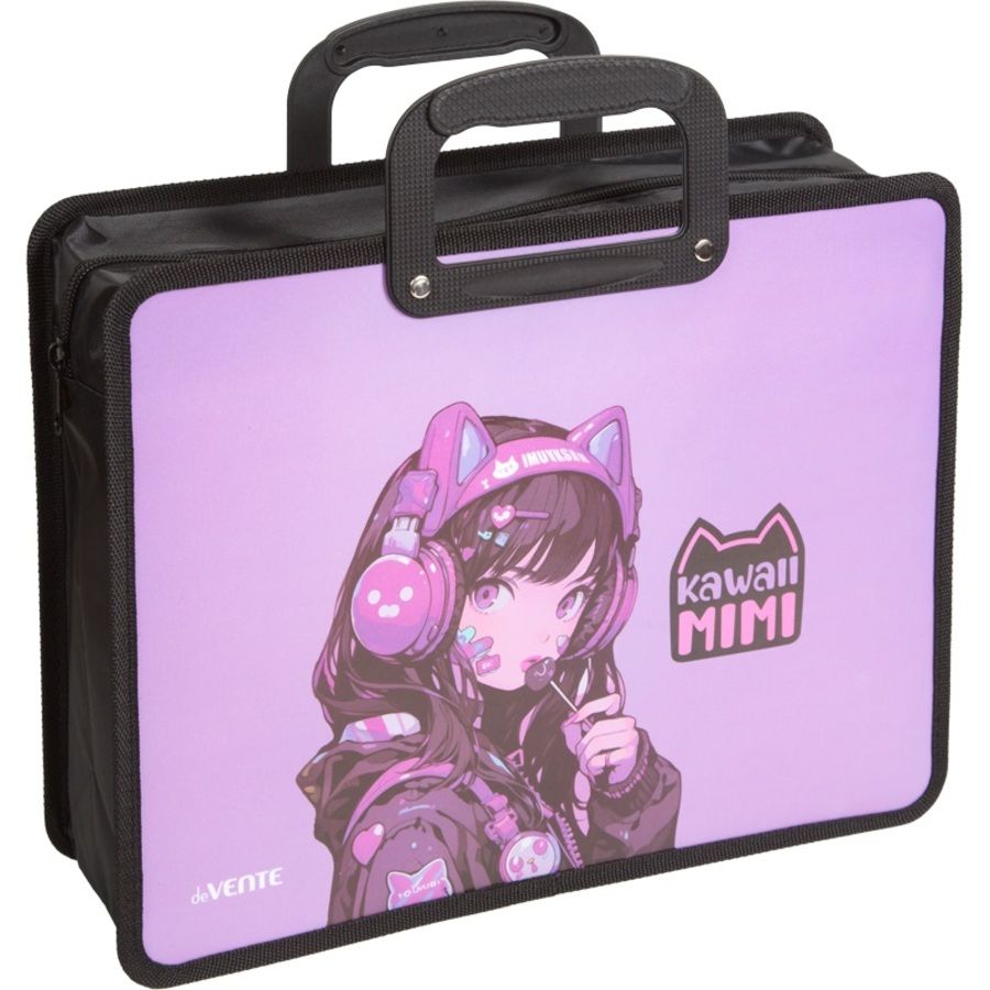 Папка для тетрадей, ИЗО и технологии "deVENTE. Kawaii Mimi" A4 (33,5x26x10 см) с текстильным расширением 10 см, на молнии сверху, пластик 400 мкм, пластиковые ручки, в пластиковом пакете