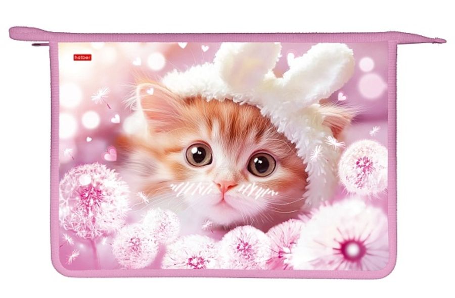 Папка для тетрадей пластик молния сверху А4 2отд. Мяу стори HATBER AMt_07070 (жен)