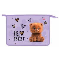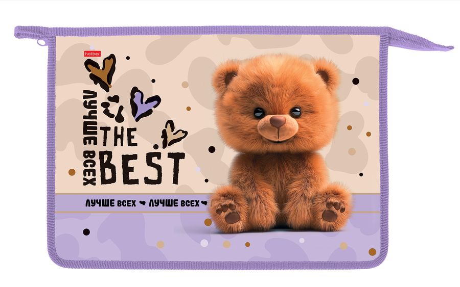 Папка для тетрадей пластик молния сверху А4 2отд. Пушистый мишка HATBER AMt_07068 (жен)
