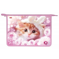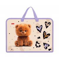 Папка для тетрадей Пластиковая 2 отделения с вкладышем А4ф на молнии 245х340х75мм -Пушистый мишка- в индив.упак.