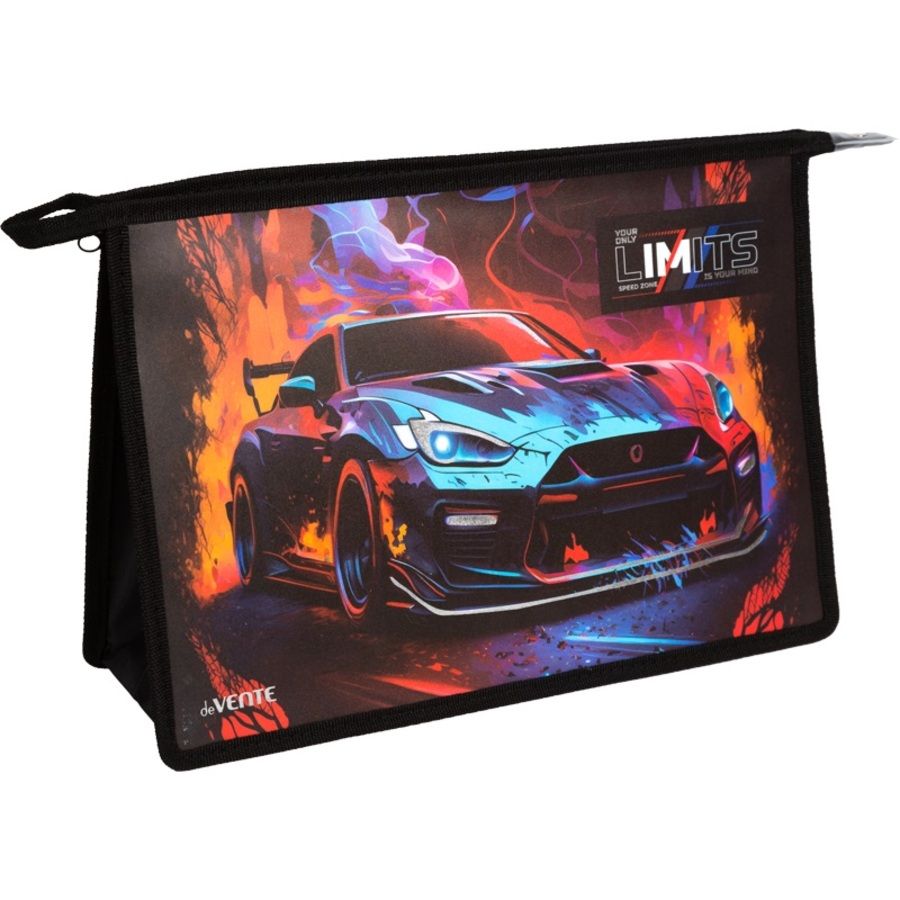 Папка для тетрадей "deVENTE. Speed Zone" A5 (243x200x80 мм) с текстильным расширением 80 мм, на молнии сверху, 400 мкм, непрозрачная с рисунком, фактура песок, с тиснением серебристой фольгой, индивидуальная упаковка